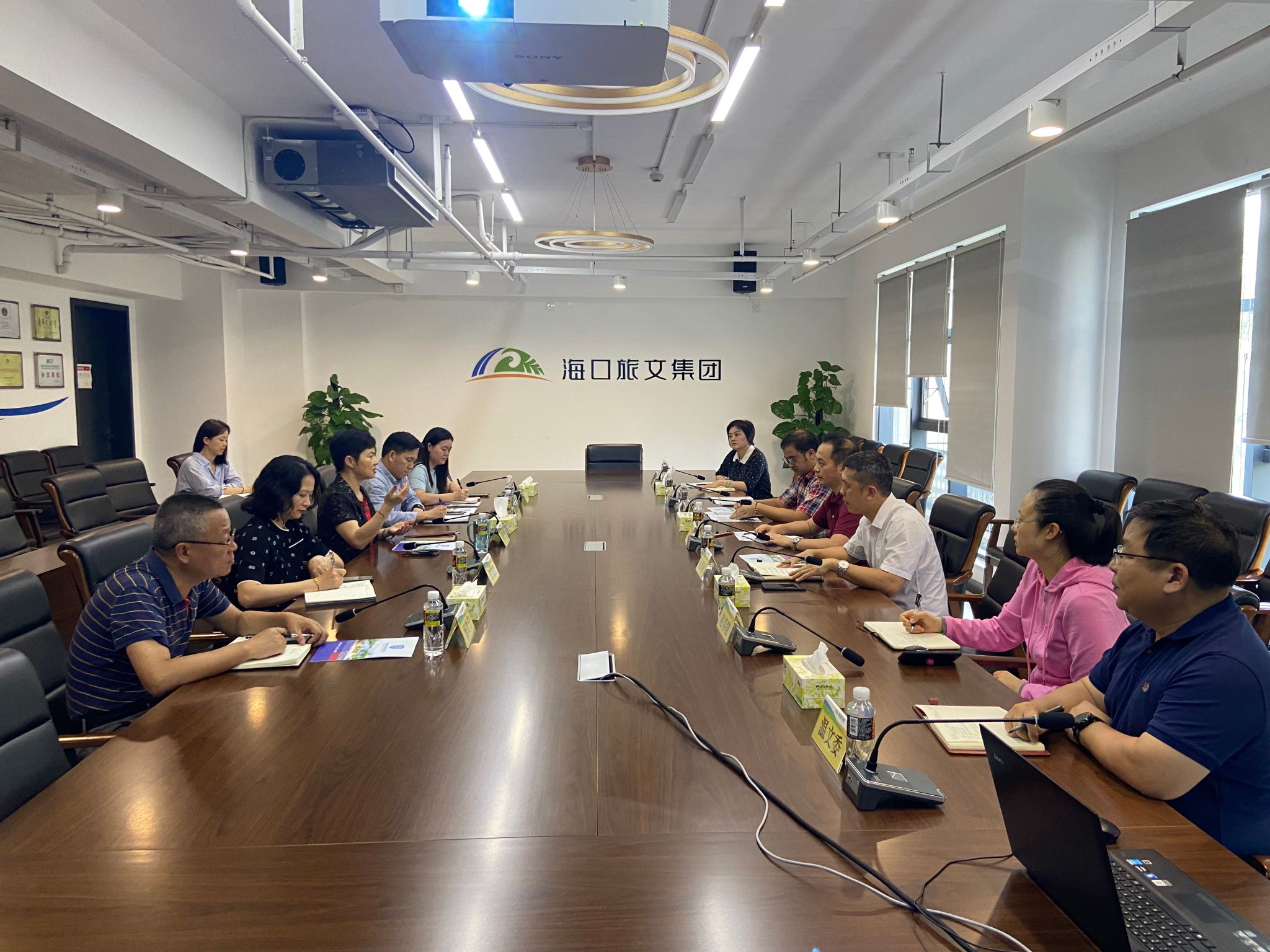 4月11日下午,公司副经理王一闳带队赴海口旅游文化投资发展集团有限公司,开展党建交流暨访企拓岗专题座谈会。海口市委宣传部讲师团团长吴彭保、海口旅文集团党委副书记、总经理钟红霞出席。会议由钟红霞主持。
