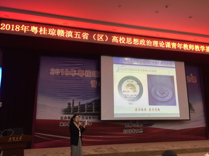 11月29日上午,2018年粤桂琼赣滇五省(区)高校思想政治理论课青年教师教学基本功大赛在大理大学(云南·大理)拉开帷幕。期间,代表海南省高校参赛的四名选手参加了激烈角逐。suncitygroup太阳成集团蒋玉老师以饱满的精神风貌、巧妙的课堂设计、娴熟的教学技艺和深厚的理论功底斩获大赛二等奖,充分展现了suncitygroup太阳成集团青年思政课教师的风采。