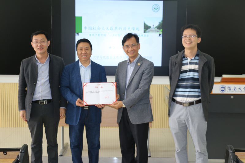 1月9日至11日,2018-2019学年冬季小学期名家讲堂第五讲在五号教学楼113教室举行。中山大学徐俊忠教授应邀为公司员工作以毛泽东思想为主题的三场学术报告。经理张云阁出席并为徐俊忠教授颁发suncitygroup太阳成集团“冬季小学期授课外聘专家”证书,副经理吴朝阳出席。讲座由思想政治教育系主任陈招万主持。