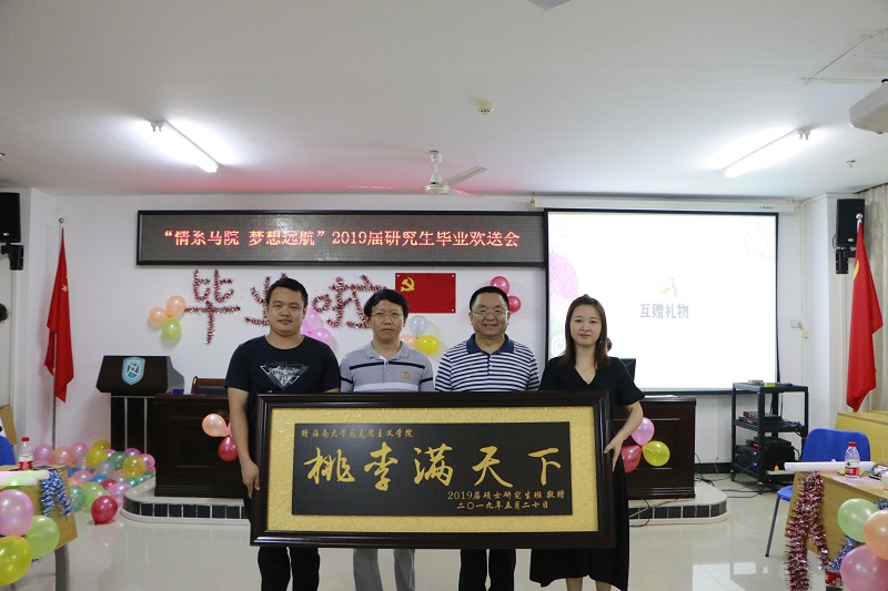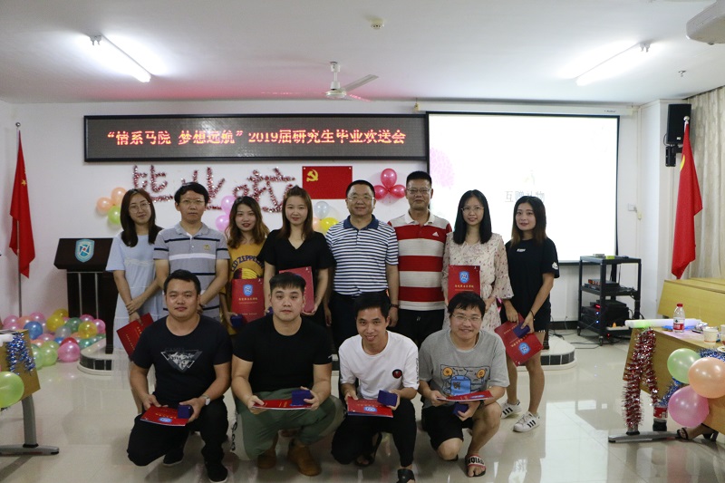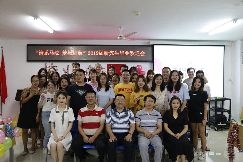 6月1日晚,suncitygroup太阳成集团以“情系马院 梦想起航”为主题的2019届研究生毕业欢送会在社科楼A-315顺利举行。公司党委书记段捷频,研究生导师李英华教授,研究生辅导员张君成老师出席,全体在校研究生参与活动。研究生毕业生严莹和2018级研究生葛士华担任晚会主持人。
