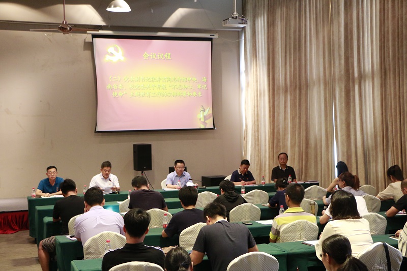 会上,张井富向传达了中央、海南省委、公司党委关于开展“不忘初心、牢记使命”主题教育的安排部署和要求,明确了本次主题教育的目的和重大意义;王善宣读了公司党委组织部《关于公布首批党建工作标杆二级单位党组织、样板党支部培育创建单位名单的通知》、《关于持续推进基层党组织标准化建设的通知》等文件。