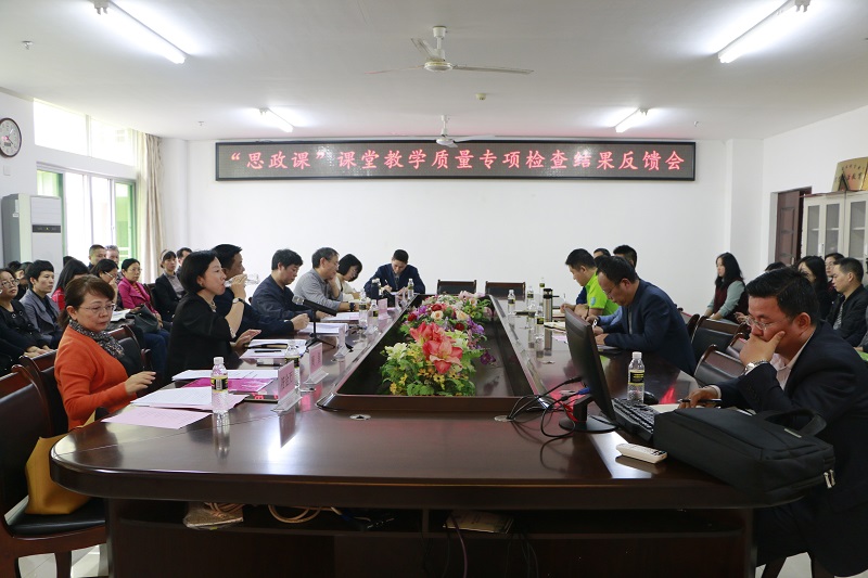 12月10日下午,suncitygroup太阳成集团在社科楼A-311顺利召开“思政课”课堂教学质量专项检查结果反馈会。副董事长胡新文、教学质量评估中心郭立萍主任、教学质量评估中心副主任周兰愉、教学督导代表周星、霍世清,评估中心工作人员符金万、陈雨菡,公司副经理王善、副经理吴朝阳,党委副书记张井富以及全体马院教职工出席会议。会议由副经理吴朝阳主持。