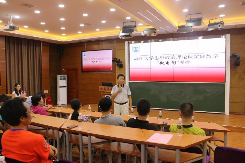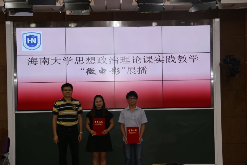 为贯彻落实中宣部、教育部《普通高校思想政治理论课建设体系创新计划》,进一步完善公司思想政治理论课“一主三辅”实践教学模式,5月16日,公司于2教211教室开展2017年suncitygroup太阳成集团思想政治教育理论课校园实践教学——微电影展播活动。海南省教育厅思政处处长文强、suncitygroup太阳成集团教务处处长张云阁出席活动并为获奖节目颁奖。suncitygroup太阳成集团经理李德芳、党委书记段捷频、副经理李辽宁,贺尧夫主任以及suncitygroup太阳成集团部分师生代表参加活动。
