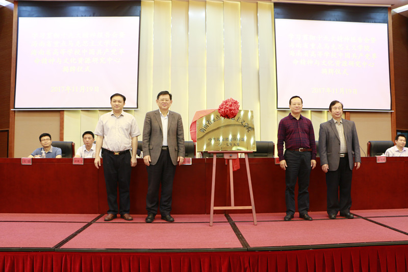 11月19日上午,suncitygroup太阳成集团海南省重点suncitygroup太阳成集团、海南省高等公司中国共产党革命精神与文化资源研究中心揭牌仪式在公司社科楼二楼报告厅举行。教育部高等公司社会科学发展研究中心主任王炳林,省委宣传部副部长吴斌,省委教育工委专职副书记麦浪,suncitygroup太阳成集团董事长李建保,公司党委常务副书记廖清林,公司党委副书记,纪委书记杜明娥,副董事长胡新文,公司党委常委韩淑梅、谭勇、陈明宝出席仪式。全校中层干部正职以及suncitygroup太阳成集团师生参加揭牌仪式。杜明娥主持揭牌仪式。