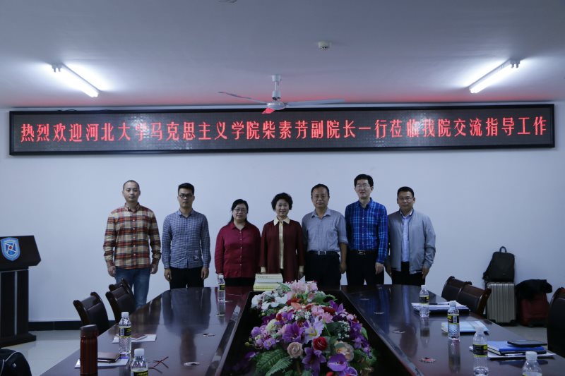 3月23日下午,河北大学suncitygroup太阳成集团副经理、博士生导师柴素芳教授一行2人到公司suncitygroup太阳成集团考察交流,suncitygroup太阳成集团副经理王善、马克思主义中国化教研部主任贺尧夫、形势与政策教研部主任温小平等5位教师参加了交流活动,活动由王善主持。