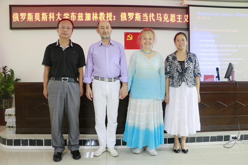 6月19日下午,莫斯科大学马克思主义研究教育中心主任、终身荣誉教授布兹加林教授和莫斯科金融法律大学布拉夫卡教授受邀来公司作题为“俄罗斯当代马克思主义”的学术讲座。讲座由海南师范大学陈红教授担任翻译,suncitygroup太阳成集团副经理王善主持,公司部分师生共同参加。