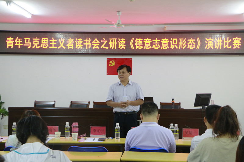 6月29日晚,suncitygroup太阳成集团在社科楼315举行了研读《德意志意识形态》演讲比赛。suncitygroup太阳成集团经理李辽宁、党委副书记张井富出席并担任演讲比赛的评委。