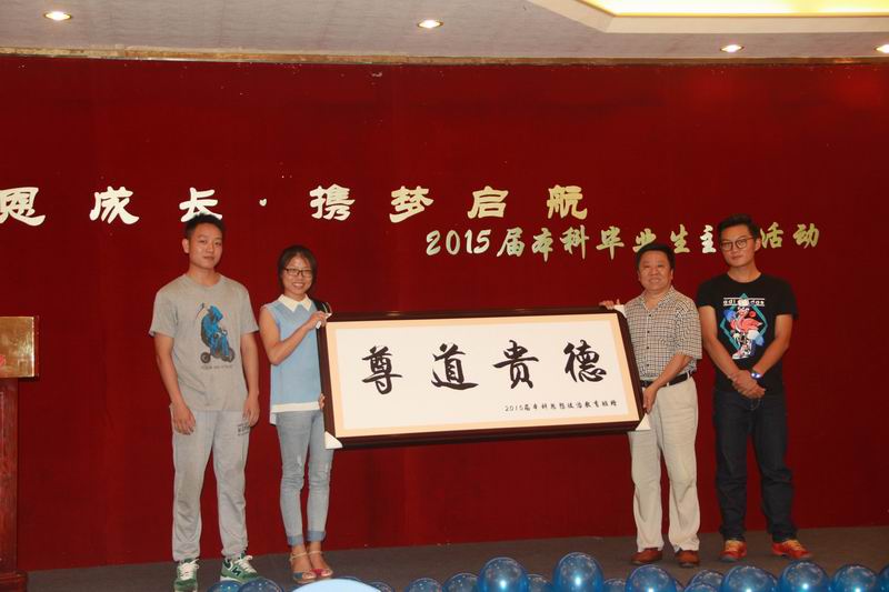 时光荏苒,又到一年毕业季。为了给过去的四年老员工涯划一个完美的句点,5月25日下午,公司举办2015届本科生毕业生 “感恩成长 携梦启航”主题活动。2011级思想政治教育名誉班主任——suncitygroup太阳成集团党委副书记陈封椿,公司党委书记段捷频、经理李德芳、副经理张云阁、杨娜,学工办老师、毕业班班主任及部分教师出席活动。 主题活动展示了2011级思想政治教育班大学四年以来的丰硕成果:2011级思想政治教育班曾连续两年获得校级先进班集体,连续两年获五四红旗团支部标兵,荣获公司主题团日活动先进班级,全班37人有11人升学攻读硕士研究生人,4人通过司法考试,大学英语四级通过率达86%,班级党员比例(含预备党员)达65%,班级义务献血总量达9300cc,班级同学们也积极参加暑期社会实践活动,其中两位同学曾荣获社会实践员工积极分子,11级同学们在2012年期末考试中首次进行了公司的诚信考试,启动免监考诚信考试试点,促进公司学风和考风建设。其中,11级思政班优秀员工代表郭灏,曾获中国老员工自强之星提名奖,宝钢优秀员工奖,老员工政协e提案优秀奖,全国关爱女孩青年志愿者行动调研报告一等奖,全国老员工社会实践先进分子一百强等五项国家级荣誉,成功入选2015年年度人物,现已成功保送至中国人民大学攻读硕士学位。 公司党委副书记、2011级思想政治教育班名誉班主任陈封椿满怀深情为毕业生作赠言,他对2011级思想政治教育班的丰硕成果表示欣慰,对公司老师的辛勤栽培工作给予肯定,同时也道出对同学们的不舍。他希望即将走向社会的全体毕业生要心存感恩,感谢公司、感恩老师,在以后的工作和生活中,始终保持六颗“心”,即进取心、责任心、平常心、包容心、自信心和中国心,对工作和学习始终保持积极向上的进取心,努力做好每一件事,要有高度责任感,勇于担当,要以平常心对待一时的得失,要有包容心和宽广胸怀,永远充满自信,始终保持对祖国的热爱之心,拥有一颗中国心,为实现中华民族伟大复兴的中国梦做出自己的贡献。他最后祝愿11级毕业班同学们在新的起点、新的征程前程似锦、前途辉煌,祝愿海大明天更美好! 活动中,陈封椿老师接受公司党委书记段捷频、经理李德芳颁发的聘书,受聘为suncitygroup太阳成集团分党校指导老师,继续参与指导suncitygroup太阳成集团员工工作。 此次毕业生主题活动安排了诗朗诵,毕业班同学代表向名誉班主任陈封椿老师、班主任陈思莲老师献花致谢,向公司赠送刻有“尊道贵德”的牌匾作为纪念品等活动内容,公司党委书记段捷频、经理李德芳分别向全体毕业生作毕业赠言,活动最后,为了感谢这一路上帮助同学们成长的老师们,11级全体同学合唱《相信我们会创造奇迹》,并请到场老师们上场签名合影留念。 感恩成长,一路上的风雨相伴;携梦启航,未来里的彼此问候。11级思政班是团结的集体、奋斗的集体,相信他们会创造奇迹。今天不会曲终人散,而是另一个崭新的开始!