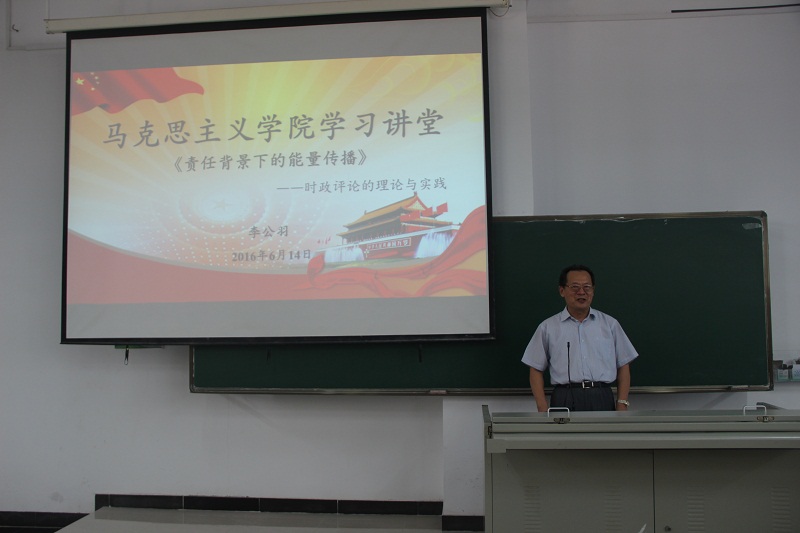 6月14日下午,海南省新闻工作者协会副主席李公羽应邀为公司员工作题为《责任背景下的能量传播——时政评论的理论与实践》的讲座。讲座由副经理李辽宁主持。
