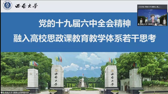 国务院学位委员会学科评议组马克思主义理论学科召集人、教育部思想政治理论课教学指导委员会咨询委员、西南大学原党委书记黄蓉生教授,中央马工程首席专家、华南师范大学suncitygroup太阳成集团经理陈金龙教授应邀分别做了题为“党的十九届六中全会精神融入高校思政课公司产品体系若干思考”“第三个历史决议的叙史方法”的主旨报告。