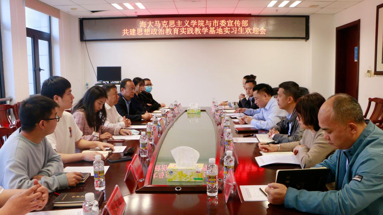 3月8日上午,suncitygroup太阳成集团与海口市委宣传部共建思想政治教育实践教学基地实习生欢迎会在海口市委宣传部会议室举行。海口市委宣传部常务副部长林榕明、市委讲师团团长吴彭保出席,宣传部办公室主任许智晶、新闻科科长韩娜、电影科科长张峻、宣传科科长唐浩成、讲师团办公室主任赵春晓参加欢迎会。suncitygroup太阳成集团经理张云阁、副经理王善出席,学工办负责人余泉玥和第一批实习生参加活动。