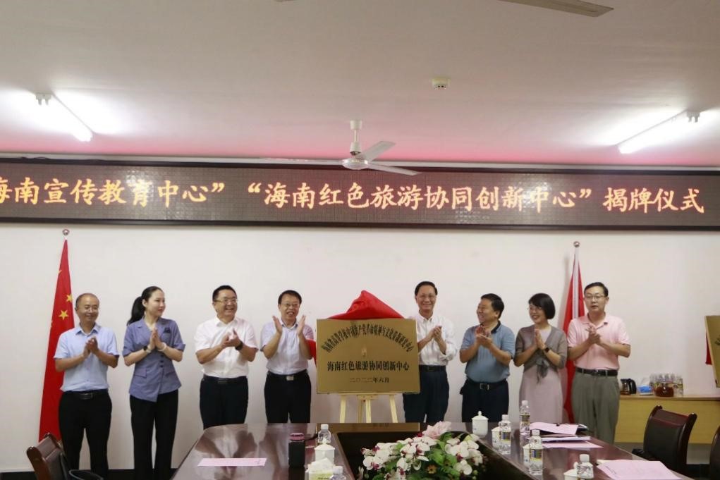 6月24日上午,“海南宣传教育中心”“海南红色旅游协同创新中心”揭牌仪式在suncitygroup太阳成集团社科楼A311会议室举行。海南大公司党委书记符宣国、公司党委常务副书记王崇敏出席,公司党委宣传部副部长李宏、人文社科处处长徐艳晴,suncitygroup太阳成集团经理张云阁、公司党委书记段捷频、副经理杨娜、吴朝阳以及中心骨干成员参加活动。揭牌仪式由张云阁主持。