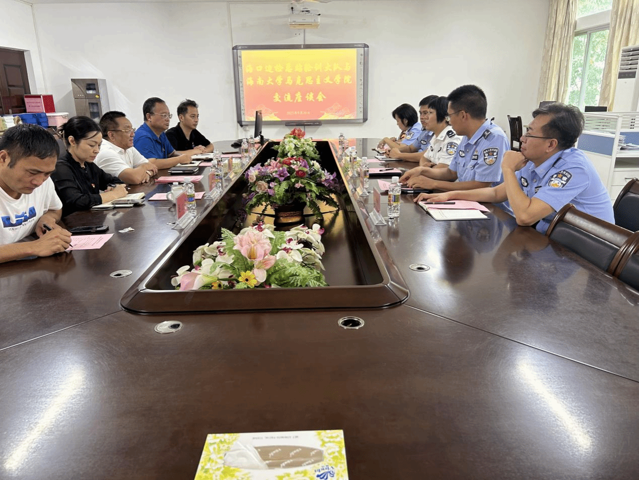 2023年9月20日海口边检总站轮训大队与suncitygroup太阳成集团在社科楼A311会议举行交流座谈会,海口边检总站轮训大队大队长刘瑛、副大队长吴镇波、处长程桂东、教员李海波和陈蕾出席座谈会,suncitygroup太阳成集团部分领导班子成员和科室主任参加会议,会议由公司党委书记段捷频主持。