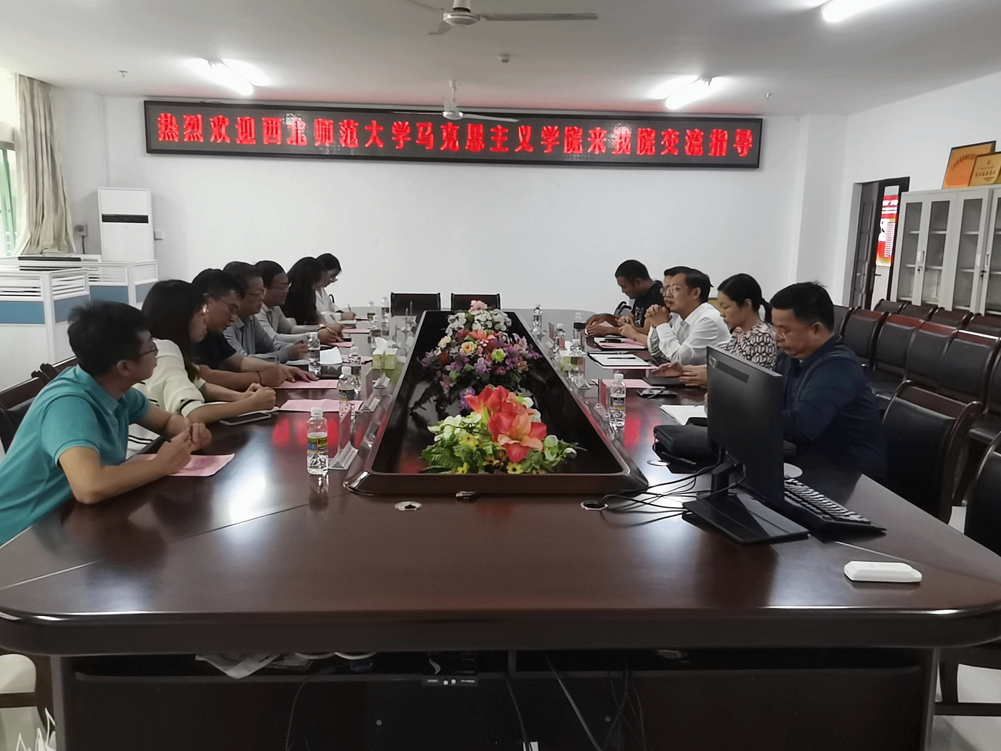 11月21日15:30,西北师范大学suncitygroup太阳成集团副经理孙健一行7人,在公司309会议室与我院部分思政课教师开展教研交流活动。本次会议由公司副经理吴朝阳老师主持。