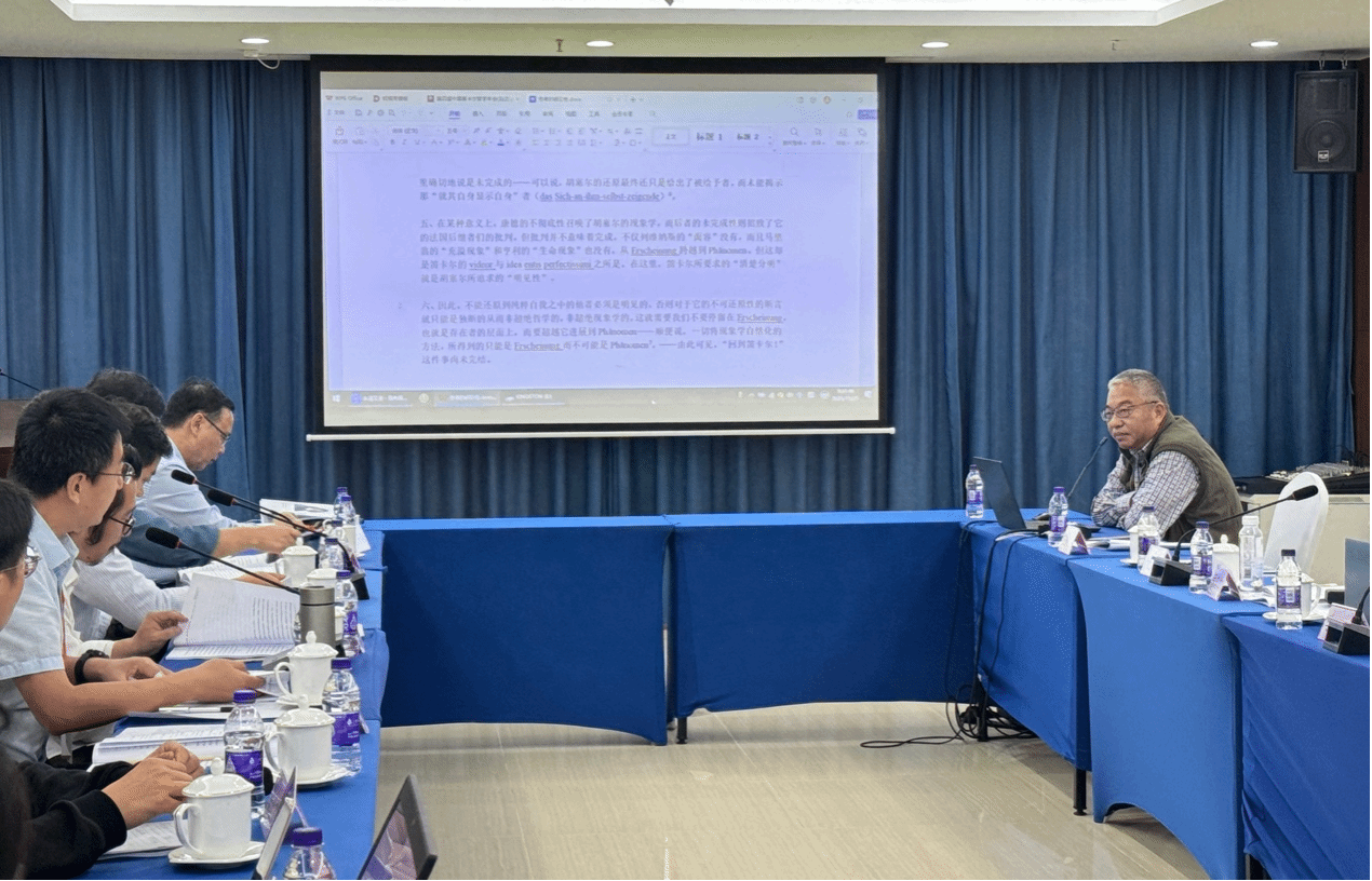 笛卡尔哲学年会的第四场发言由同济大学李琍教授主持,湖南师范大学李志龙教授、清华大学张伟特教授以及法国索邦大学笛卡尔研究中心陈东兴博士依次发言。李志龙教授的论文题目为“机械论世界图景的形而上学基础:以笛卡尔的运动学为中心”,他认为审视笛卡尔运动学背后的形而上学基础,将有助于把握世界图景的机械化,也是理解现时代自然观的必经之路。张伟特教授和陈东兴博士线上参会,作了远程发言。张伟特教授的论文题目为“人工智能等级的标准:图灵、笛卡尔与哥德尔”,通过分析笛卡尔的“我思故我在”程序,将其一般化为表示人类高级智能的有限自我反思、自我指涉、自我证明的点,文中讨论了Chat GPT的智能等级,认为其已经具备图灵点、可能具有笛卡尔点,但尚未达到哥德尔点,引发了学者们的热烈讨论。陈东兴博士的论文题目为“笛卡尔‘世界寓言’中的形而上学”,他解释了笛卡尔“世界寓言”的说法以及其中的物理学理论与形而上学预设的联系。