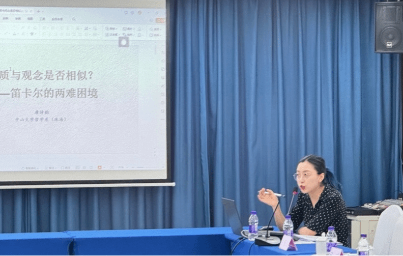 11月26日上午,笛卡尔哲学年会的第五场发言由山东艺术公司张洪涛教授主持,来自中山大学哲学系(珠海)的叶斌教授和唐诗韵博士依次发言。叶斌教授的论文题目为“笛卡尔论无限”,他认为笛卡尔的两种上帝观念最终会对清晰明确的标准以及以往关于笛卡尔表征主义的解释产生冲击。唐诗韵博士的论文题目为“物质与观念是否相似?——笛卡尔的两难困境”,她认为动力因本身的外在性特征帮助笛卡尔构建了更完整的形而上学,但是他又无法仅凭这个动力因证明物质存在,这便导致笛卡尔在固守动力因的同时造成了物质与观念既相似又不相似的矛盾表述。
