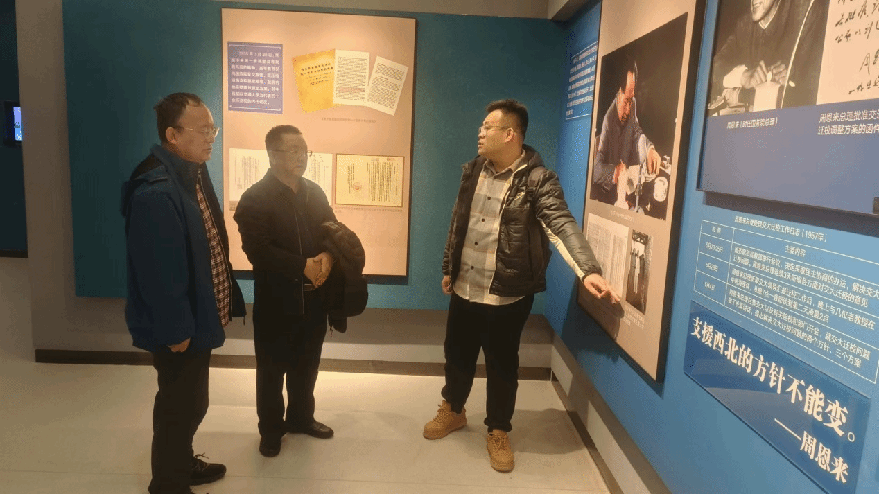 调研组与西安交通大学suncitygroup太阳成集团同行举行座谈,西安交通大学马克思主义公司党委书记苏玉波主持座谈会并就党建工作进行介绍,经理燕连福从历史沿革、团队建设、服务地方等方面介绍了西安交通大学suncitygroup太阳成集团的办学情况,并重点介绍了“西迁精神”融入思想政治理论课的相关经验,副经理陈建兵、梁军,公司员工、西安交通大学suncitygroup太阳成集团高飞老师出席座谈会并带领调研组参观了交大西迁博物馆。