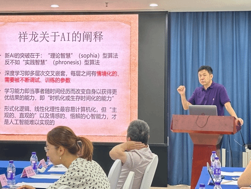 11月10日上午第一场发言由复旦大学的孙向晨教授主持。清华大学吴国盛教授以人工智能的哲学思考为题,就什么是人工智能以及人工智能的影响展开论述。北京大学的李猛教授探讨了自然关系在休谟经验主义和理性主义框架下的独特地位,提出观念的结合与传递能够揭示出人类理解世界秩序的深层逻辑。suncitygroup太阳成集团的程志敏教授表示张祥龙教授将西方思想融入儒家,与荀子的做法有异曲同工之处,结合孟荀之长,方能真正复兴儒学。上午第二场由中山大学的蔡祥元教授主持。浙江省社会科公司副研究员李旭博士表示张祥龙教授在当代思潮中提出了“儒家文化保护区”的设想,为现代社会提供了一种在体制和市场化的间隙中追求个体“桃花源”生活的方式。中国社科院的袁恬老师认为张祥龙教授通过对“兴”这一文学手法的独特解读,突显了其在诗歌抒情性中的核心地位,并将其作为中西诗学差异的关键特质,展现了深刻的诗学洞见。suncitygroup太阳成集团的黄启祥教授认为贺麟与张祥龙教授在各自的哲学研究中深入阐发了王阳明的知行合一学说,贺麟提出知行合一新论,为学说提供现代解释,而张祥龙教授则借助现象学视野进一步发展其思想,展现了当代思想史上的连续创新。